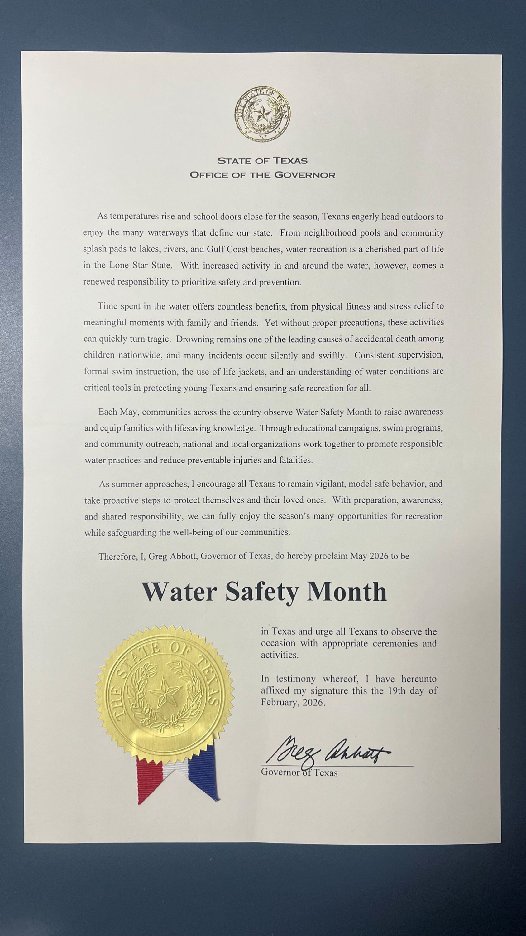 National Water Safety Month partners thank every state representative across the nation who proclaims National Water Safety Month in May for his or her state. Each year, governors, mayors, and other state officials sign proclamations and letters of recognition to show their support.